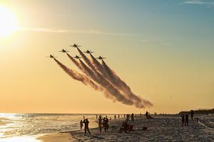 The final formation flight of the Blue Angels F/A-18A/B/C/D Legacy Hornet after 34 years of service.